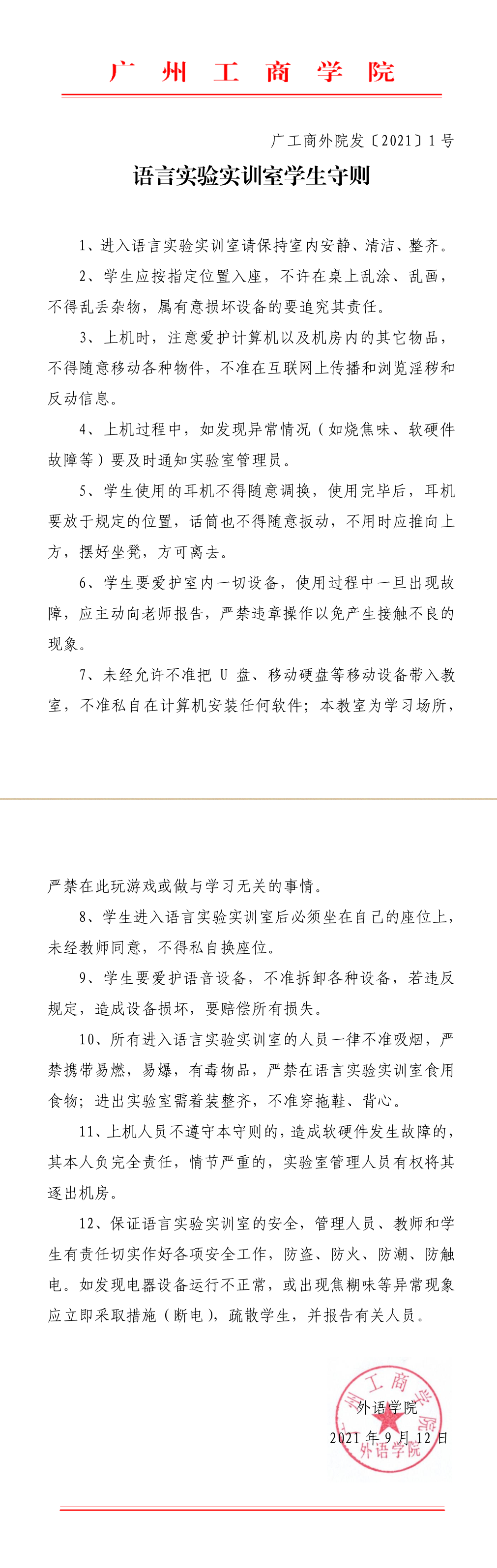语言实验实训室开放管理规定