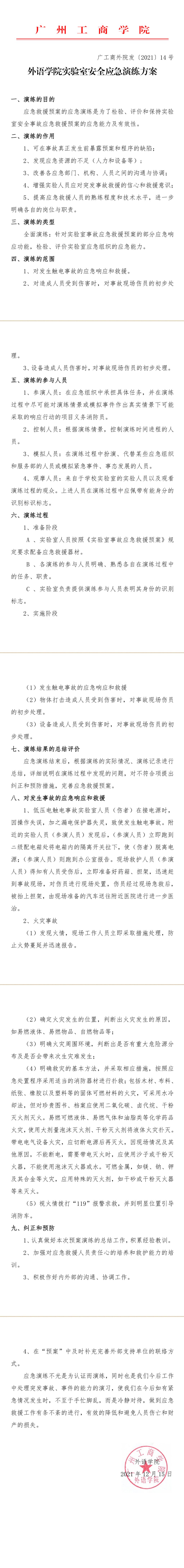 外语学院实验室安全应急演练方案