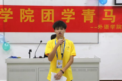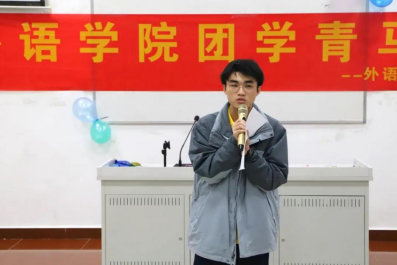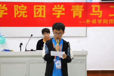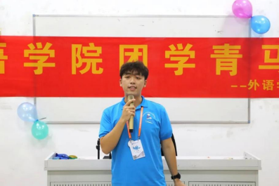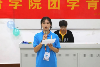 外语学院团委办公室干事蔡一坤用风趣幽默的语言讲述了自己进入部门的契机以及参加校运会工作时的体验,并且感谢部长们无微不至的关心和陪伴。