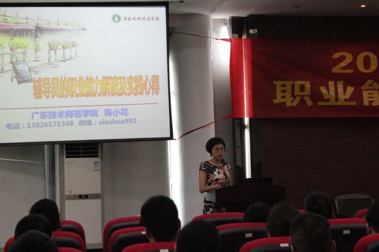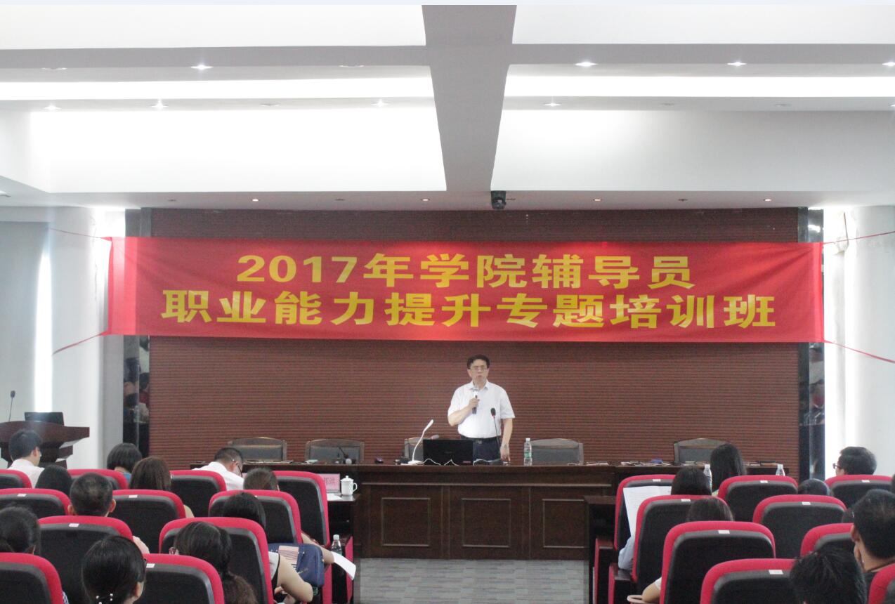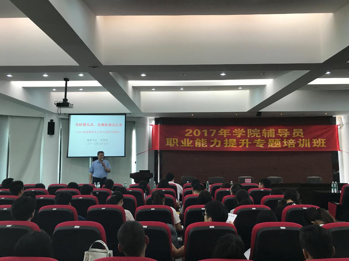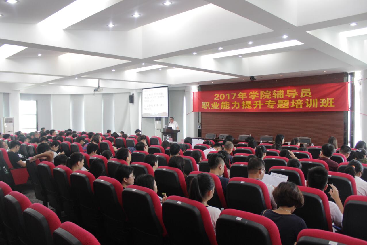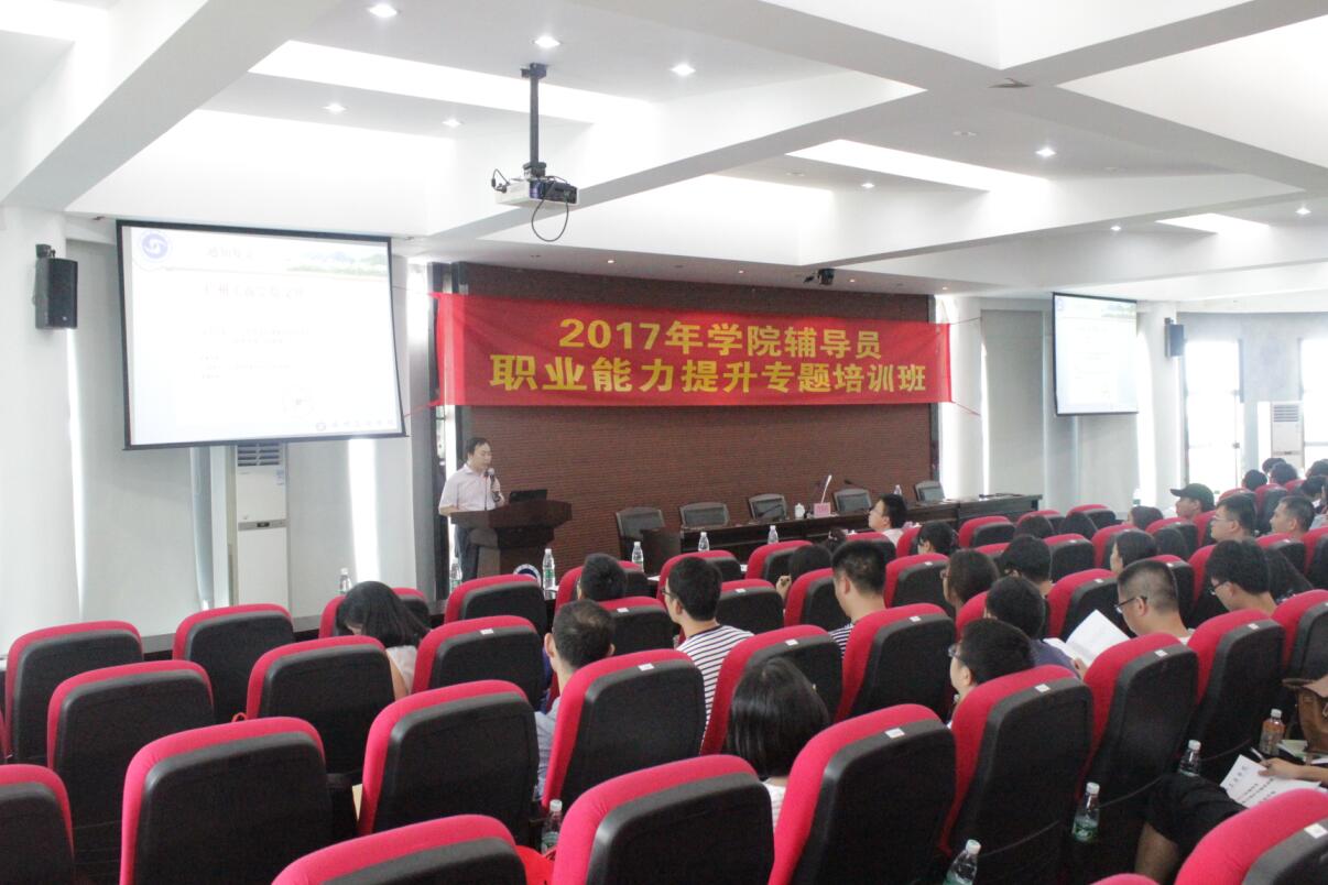 为深入学习贯彻全国高校思想政治工作会议精神,坚持学院“以德为行,以学为上”的教育思想,进一步加强辅导员队伍建设,深入开展“五进”教育实践活动,以良好的精神面貌迎接党的十九大和学院学士学位授予权评审,2017年7月6日至7月8日,我院在三水校区行政办公楼322学术报告厅,举办“辅导员职业能力提升专题培训班”。