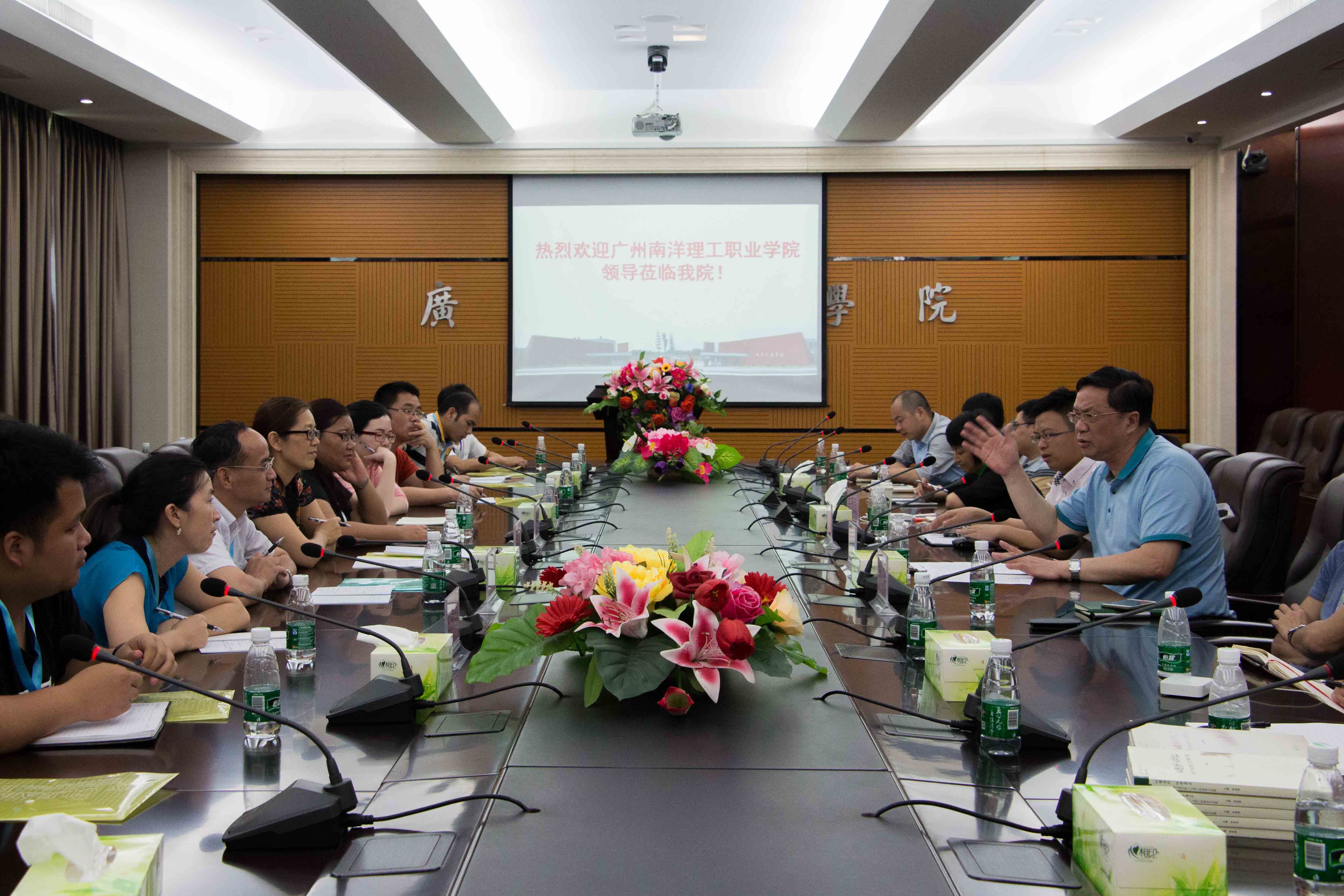 接着播放了一段南洋理工职业学院对大学生素质培养的视频,在视频下的各领导和各系的组长开始进行激烈交流与讨论,对方相互学习。经过一段时间后,各个领导组长都收获颇丰。