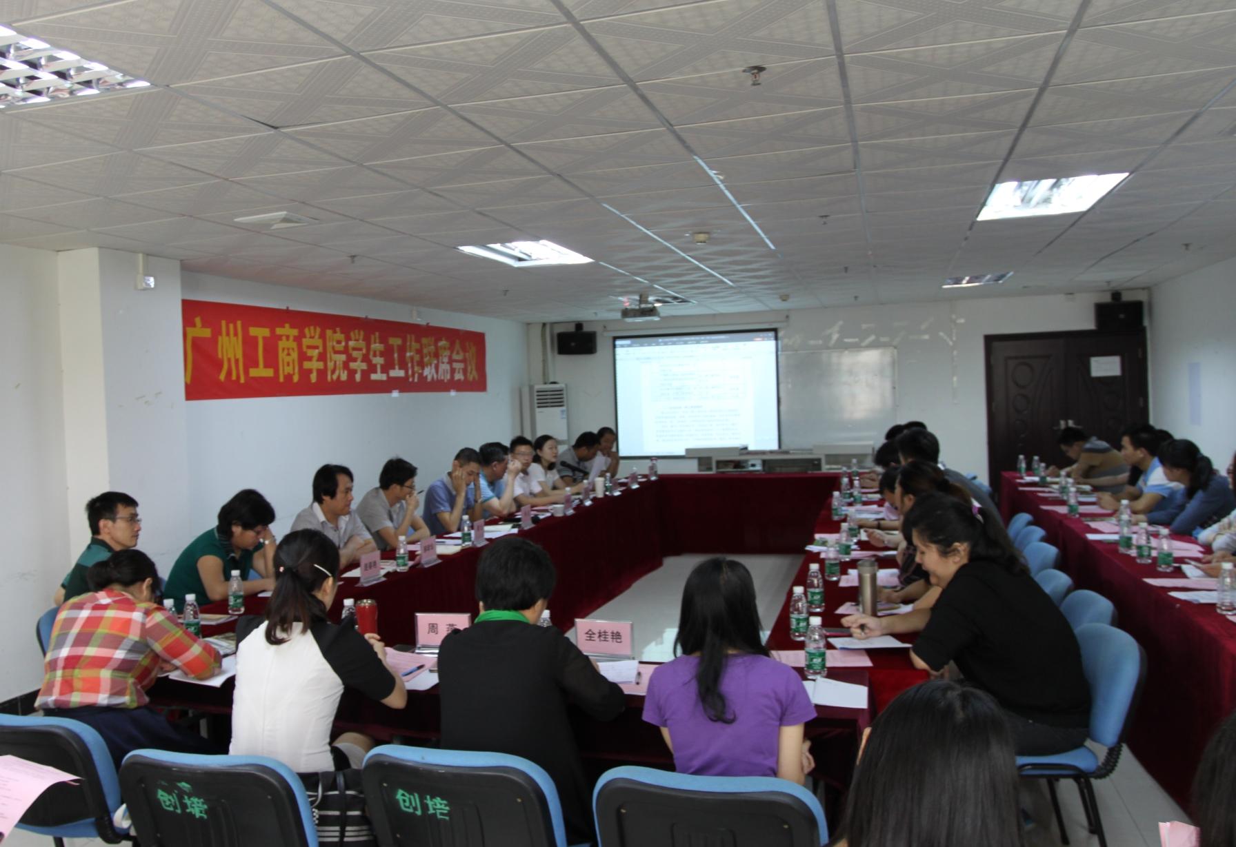 2016年4月27日上午,ky开元集团官网四月份学生工作联席会议在三水校区学生活动中心召开,本次会议由创业培训学院承办。学院党委书记钟伟强、创业培训学院常务副院长吴丽云、学生处长黄鹏等出席了会议;各系、二级学院主管学生工作负责人、学工组长及学生处相关人员共32人参加了会议。