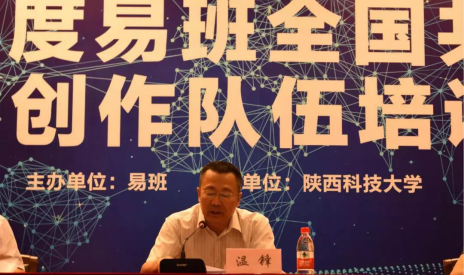 7月26日,由易班主办、陕西科技大学承办的2019年度易班全国共建高校内容创作队伍培训会(第一期)正式开班。陕西科技大学党委副书记温锋、易班总裁朱明伦、陕西省教育工委宣传部副部长樊治锋(正处级)、陕西科技大学学生工作部部长李晓共同出席了开班仪式。