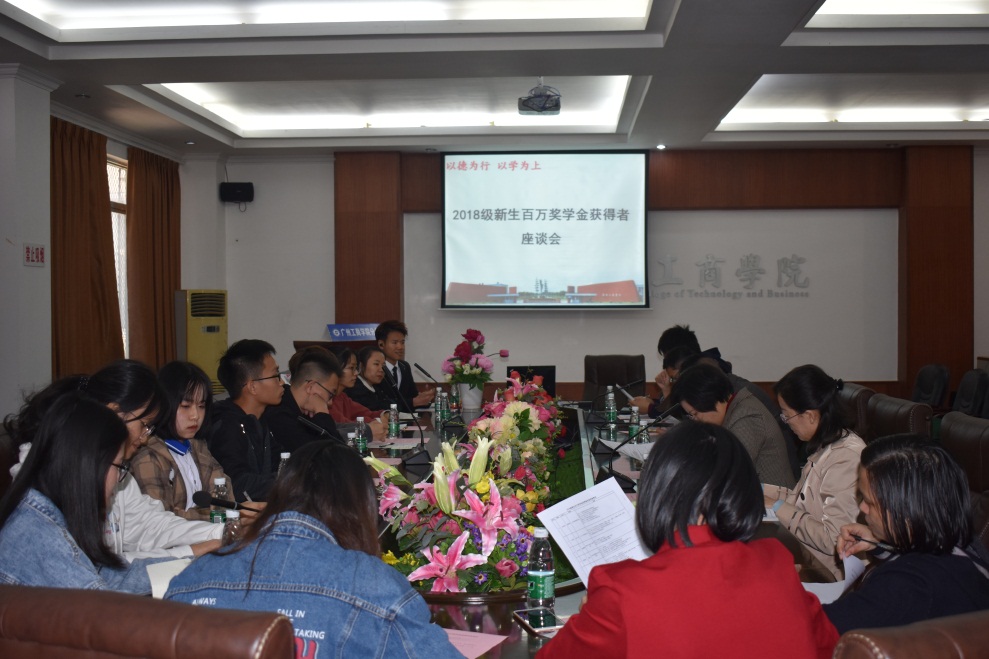 11月29日下午,学院在花都校区办公楼101会议室召开2018级新生百万奖学金获得者座谈会。学院朱特威副院长,董事办陆志丹主任,宣传部姜云霞部长,学生处相关科室教师代表出席了座谈会,座谈会由学生处谭全副处长主持。