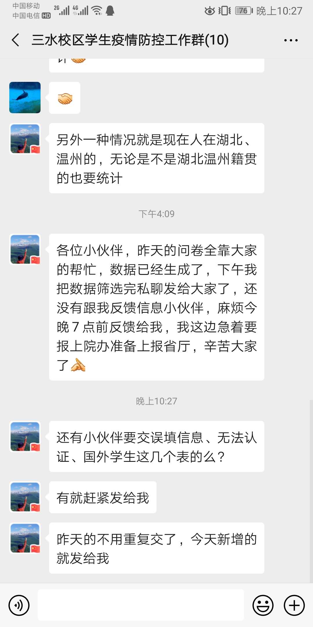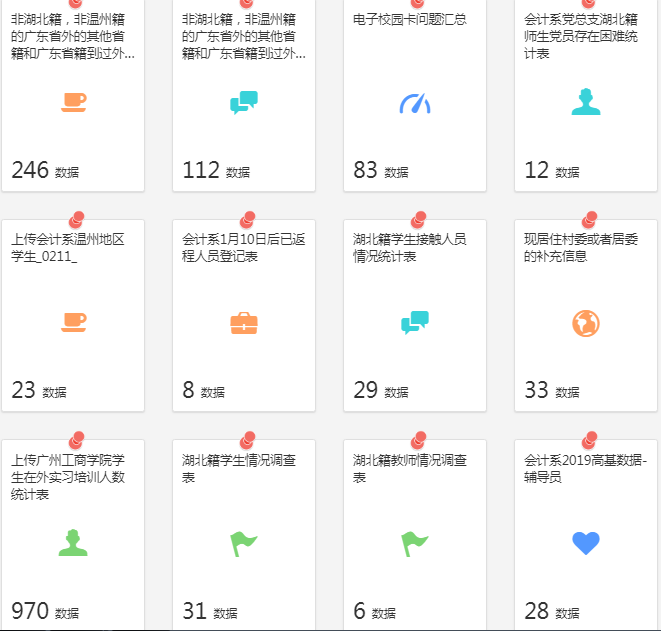 疫况精准排查。疫情期间要减少群体性聚集,为解决这一难题,各系学工组通过信息化手段,依靠网络坚守岗位,全体辅导员配合学院疫情防控信息联络组,严格纪律效率,通过“智慧广工商”、“问卷星”等信息化手段,对学生疫情信息全面排查,精准摸排我院湖北籍、温州籍及近期曾到访湖北、温州和接触过湖北、温州返乡人员的重点学生群体,对需要重点关注的学生建立其与辅导员“一对一”联系机制,落实全体学生健康动态“日报告”和“零报告”制度,构建“学院-系部-班级-学生”的四级防控体系,并利用微信、QQ沟通载体完成信息报送,确保全院上下的信息畅通。
