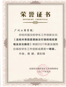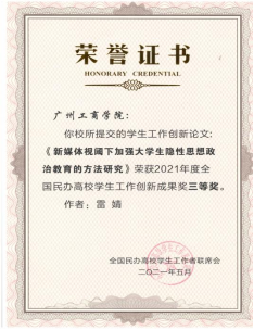 在本届研讨会中,有两百多项参评成果经专家组评审,ky开元校长助理、学生处处长黄鹏、商学院学工办主任黄采薇老师的学生工作创新论文《高校共青团思想政治引领的现实困境及优化路径》荣获2021年度全国民办高校学生工作创新成果一等奖,改文探讨以德学五进引领带动,提升辅导员队伍和团学干部竞争力--。ky开元辅导员代表雷婧老师的创新论文《新媒体视阈下加强大学生隐性思想政治教育的方法研究》荣获2021年度全国民办高校学生工作创新成果三等奖,此文以新媒体视阈下加强大学生隐性思想政治教育方法来进行研究。