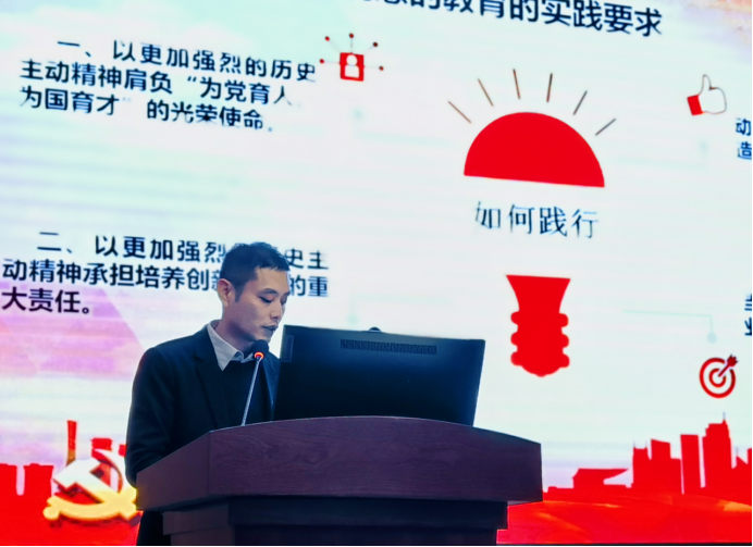 在宣讲会中,徐达同志结合自己的理论学习,就“深刻理解办好人民满意的教育的实践要求”做了深入解读。他表示,新时代新征程的使命任务赋予高校新的历史责任和战略使命,作为高校学生思想政治引领者,要牢记“三个务必”重要要求,以实际行动办好让党放心、让人民满意的教育,以实际行动筑牢国家强盛之基。