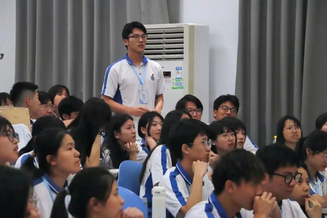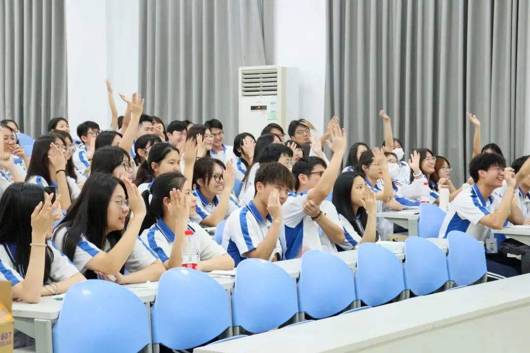 为了测试学员们对所学知识的掌握程度,本次团课设置了抢答环节,“3,2,1”口令一响,一双双手踊跃举起,学员们急切地想把自己的答案告知提问者,好学的氛围随着提问环节的开展充斥着整个教室。