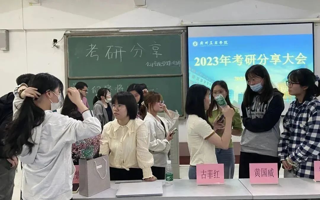 古菲红老师在分享会上向同学们介绍了自己当时考研的目的,她凭借着这股对考研的信念一直坚持了下来,最终考上广东财经大学的研究生。她表示,虽然考研对她来说已经过去了五年,但对于备考时自己努力的那段经历还是历历在目。古老师给同学们讲述了自己当时备考的心态,并希望同学们能坚持不懈,要有不服输的勇气,勇于挑战自己。