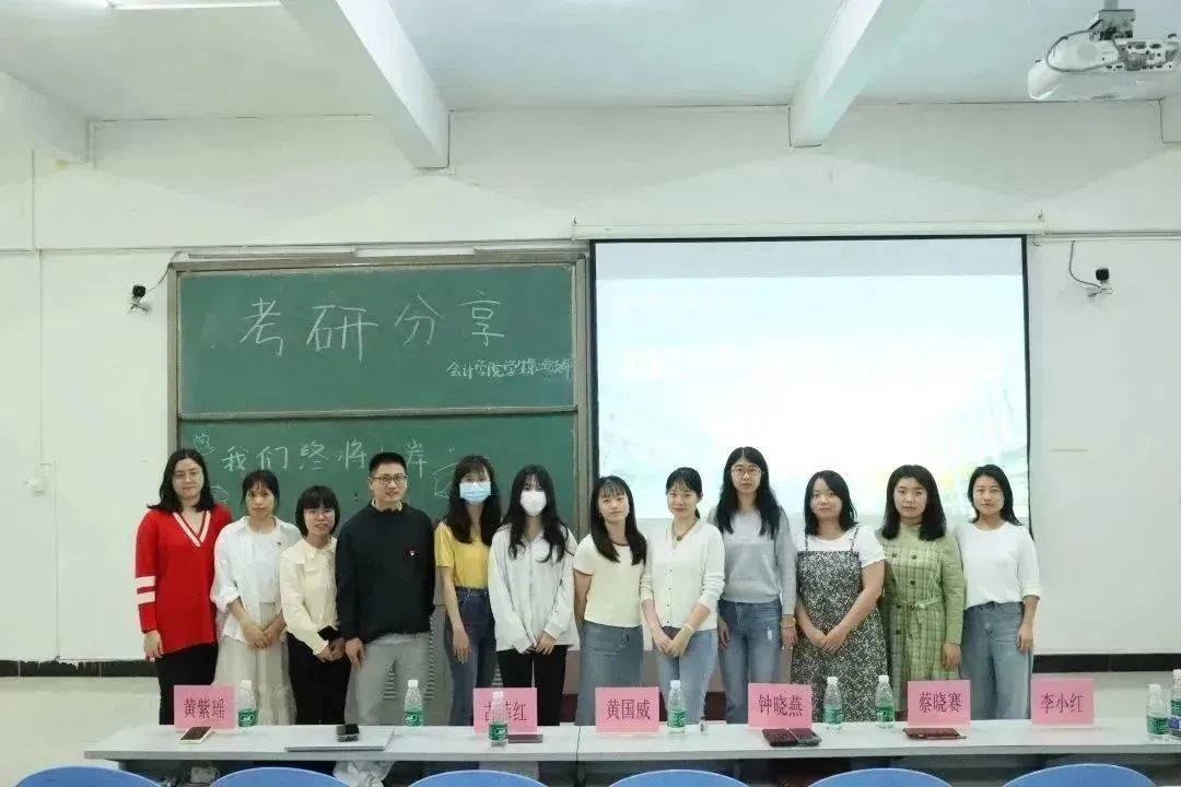 此次分享会特别邀请了我院2015级师姐(现任我院专任教师)古菲红老师,2019级黄紫瑶师姐以及龙柳莹师姐为同学们进行分享。参与人员有会计学院2020级、2021级有考研意向的同学、学生第二党支部全体教师党员以及2020级全体辅导员,本次会议由梁小钰同学主持。