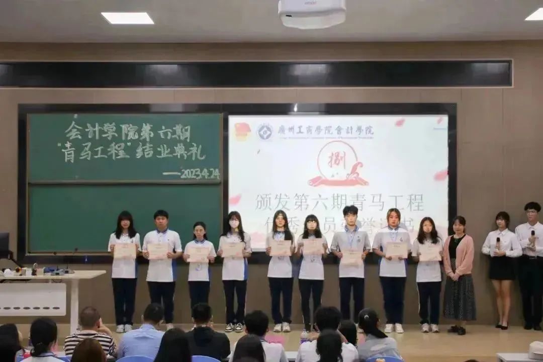 由老师们为会计学院第六期“青马工程”培训班优秀班集体、优秀班导及优秀学员颁发荣誉证书。