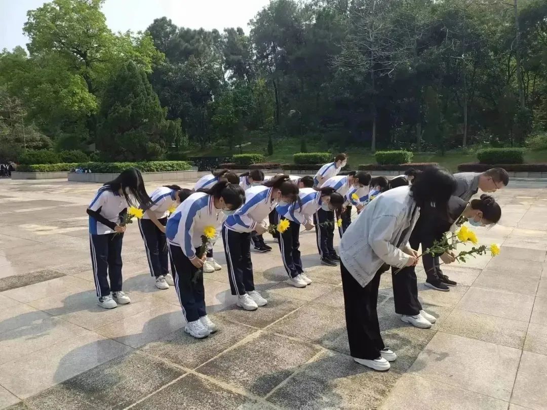 全体师生怀着虔诚的感恩之心,为先烈们默哀,向烈士纪念碑行三鞠躬礼,表达对革命先烈的深切缅怀。