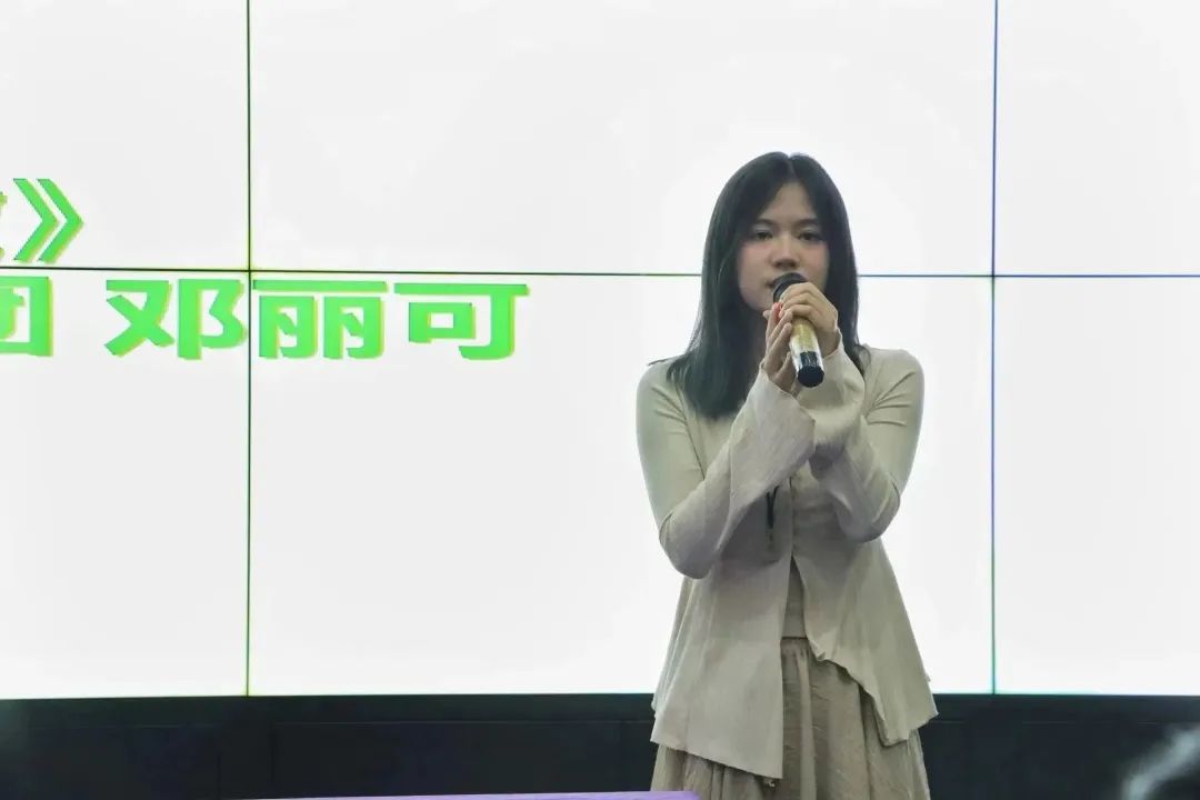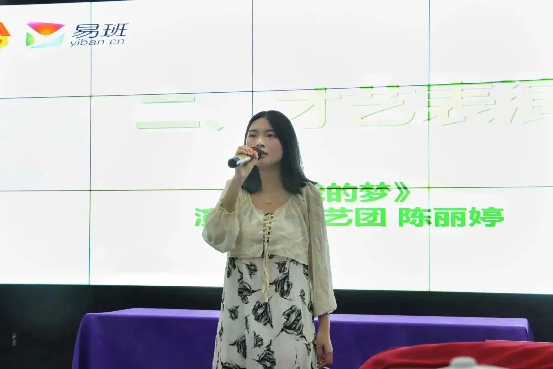 文艺团的陈丽婷和邓丽可同学分别带来歌曲《我的梦》和《微微》,动听的歌声萦绕在耳边,赢得现场观众阵阵雷鸣般的掌声。