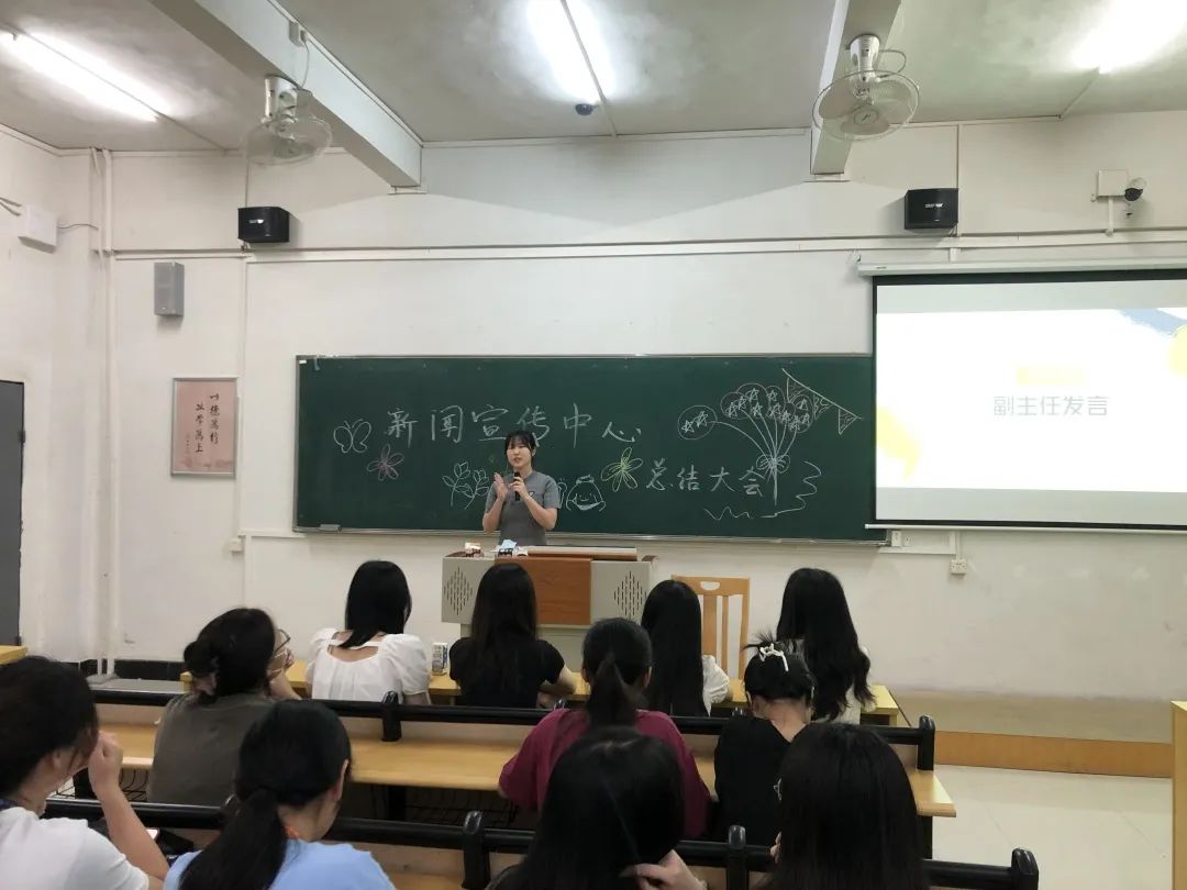 紧接着由徐寒蕊副主任发言,她认为在工作的过程中,各位干部干事们要有责任感和使命感,同时她希望新闻宣传中心的每一位成员都能严肃认真地对待每一次任务,努力提高工作质量和工作效率。