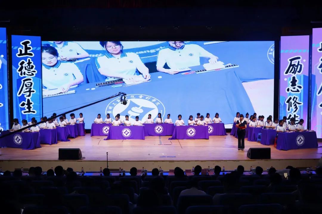 颁奖仪式前夕,会计学院高玉莲副教授与会计学院学生代表带来会计技能节目表演。噼里啪啦的算盘敲击声、指尖不断划过每一张钞票的点钞声响彻整个会场。