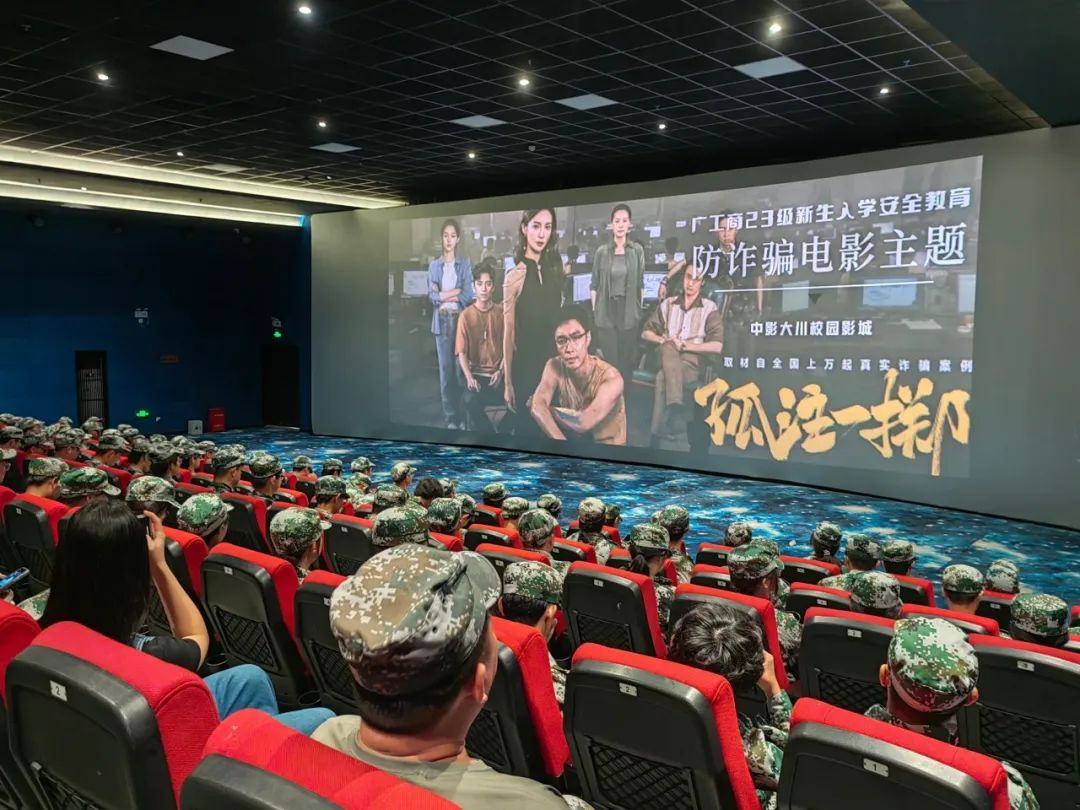 为扎实加强防范电信网络诈骗宣传教育,进一步普及防范电信网络诈骗相关知识,提升学生知诈识诈、防诈反诈意识与能力,筑牢反诈安全墙,9月16日至21日,学生工作部(处)联合中影大川校园影城国防教育基地,创新入学教育模式,活用校园资源,拓宽课堂形式,提升教育吸引力,深入学生社区,深入学生心里,组织了三水校区2023级全体新生分批次观看反诈主题电影《孤注一掷》,在三水校区为全体新生上了一场别开生面的反诈入学教育。