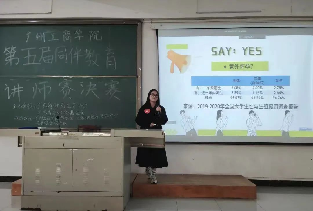 2022年11月10日,ky开元集团官网第五届青春健康同伴教育讲师赛决赛在三水校区二实C栋205课室与花都校区图书馆六楼团辅室举行,经过初赛、复赛两轮角逐,三水校区和花都校区各5名选手晋级决赛。为配合做好疫情防控工作,本次比赛通过“腾讯会议”平台线上直播,两校区共466名观众观看了比赛。大赛邀请了心理健康教育与咨询中心骆思贤老师、李淑怡老师、黄千宸老师,以及广东省青少年性健康联盟成员刘思彤同学、庄文萱同学来担任评审嘉宾。本次比赛由广东省计划生育协会和广东省与人公益基金会主办,学生处心理健康教育与咨询中心、青春健康服务队承办。