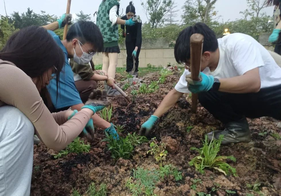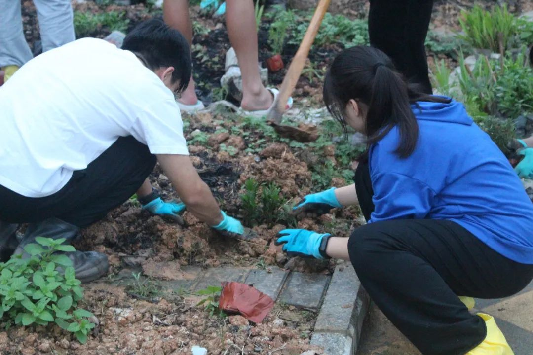 经历近日几场绵延的雨水后,绿洲的土地生出了不少杂草。在开始种植前,同学们需要先整理园地,除去杂草,锄松土壤。过程中,同学们纷纷表示这是一种新鲜的体验,身体上劳作不停,心灵却得到了极致的放松。