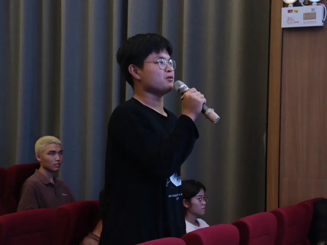 在提问互动环节,吴敏君学姐耐心细致地回答学弟学妹们关于考研就业、跨专业择业、实习招聘等问题。相信同学们在现场与吴敏君师姐进行面对面交流互动过程中,对于在校期间的学习、自身职业规划、职业意识、未来发展及就业创业等方面,能产生更多新的认识与体会。