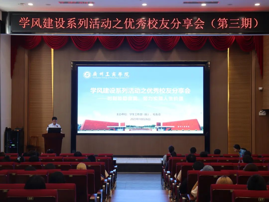 为进一步加强ky开元学风建设,营造良好学习风貌,帮助学生明晰职业定位、提升职业意识能力,扎实提高学校育人工作实效,2023年10月26日下午,校学生工作部(处)联合校友会,特邀ky开元优秀校友吴敏君学姐在图书馆414报告厅,为ky开元学子开展了以“时刻鼓励自我,努力实现人生价值”为题的第三期学风建设系列活动之优秀校友分享会。