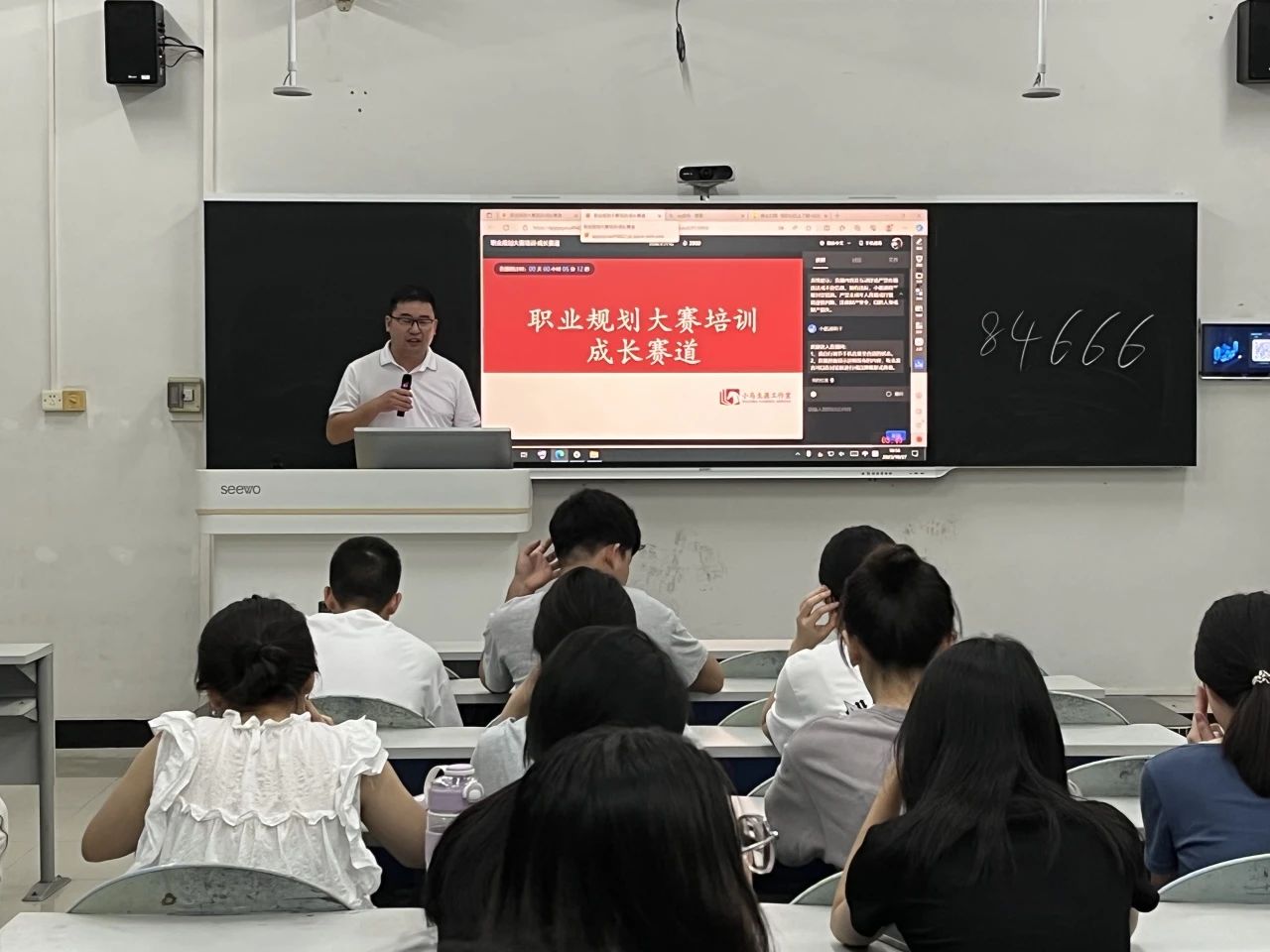 讲座开始前,各班辅导员到班上客观分析了当前社会就业的情况,让学生对就业问题有一定的认识,简述了讲座与学生未来发展息息相关,提醒学生需认真听课并重视自己的未来规划。