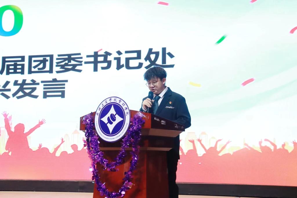 李锐兴同学先是对到场的各位领导和老师们表示感谢,并对团学新注入的鲜活血液表示欢迎和期待。他同新干事们交流自己的经验知识,让新干事们在接下来的团学生活中提升自己、结交志同道合的伙伴,与他人良好沟通,起到作为学生干事的纽带作用,热爱团队,共同营造积极向上的氛围。同时,他也期盼着新生力量能够将理论实践与自己的才华智慧结合起来,繁荣校园文化,丰富校园生活,用实际行动铸造无愧于团学工作、无愧于学院发展的辉煌业绩,做新时代的排头兵,为自身、为学院、更是为国家,争取一个更灿烂的明天。
