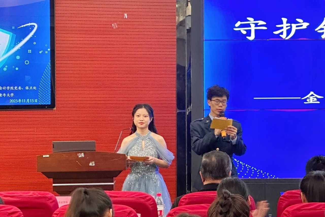 活动伊始,易露霞副校长代表学校对拨冗莅临的领导嘉宾表示热烈的欢迎。她充分肯定了本次活动,同学们对活动响应积极,用镜头记录下自己的思考和行动,展现了新时代青年大学生的社会责任感。这次活动也为同学们上了一堂弘扬中华传统美德:尊老、敬老、爱老的生动德育课。她希望本次活动不仅使会计学院学生的防诈能力得到提高,也能够让全校师生认识到防诈的重要意义。也希望与会单位今后能够深耕合作,携手并肩,在关爱老人上下真功夫,在培养学生上见真行动,为和谐社会的构建贡献力量。