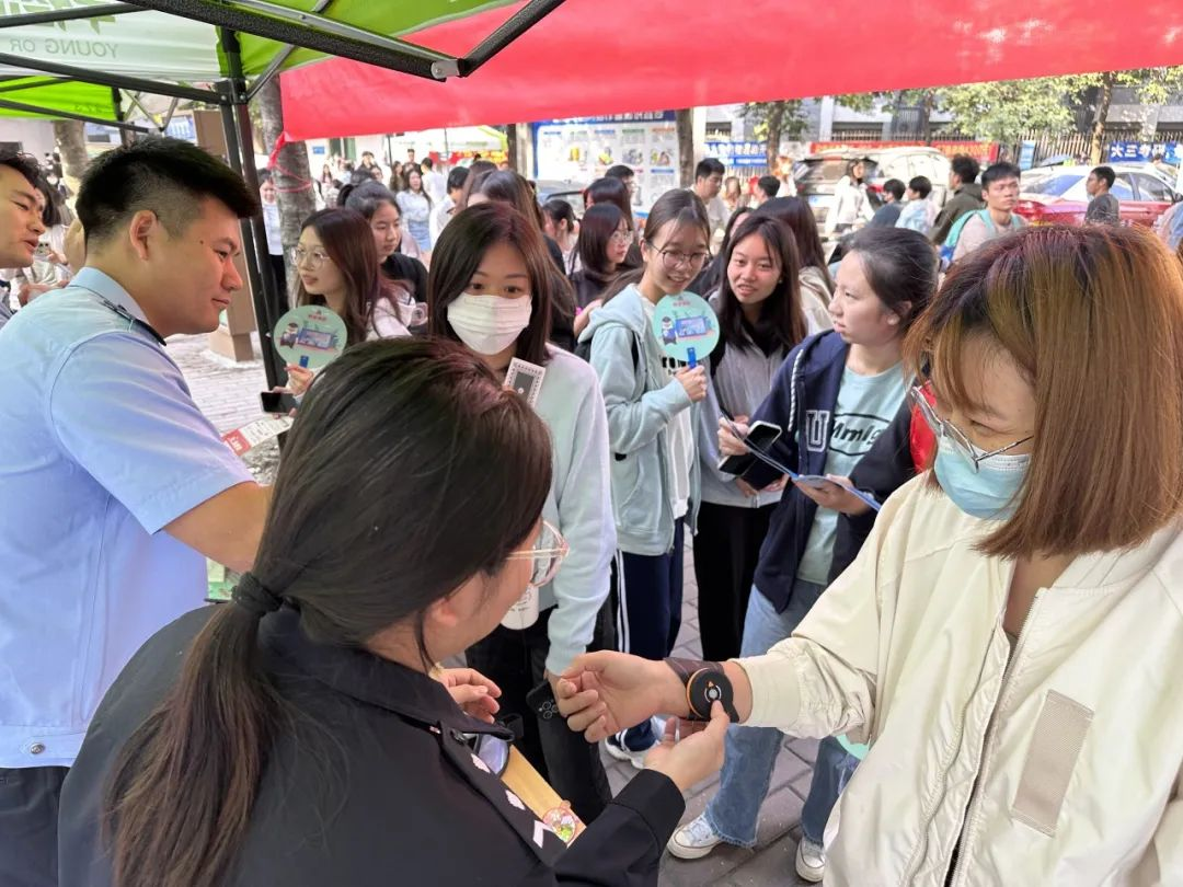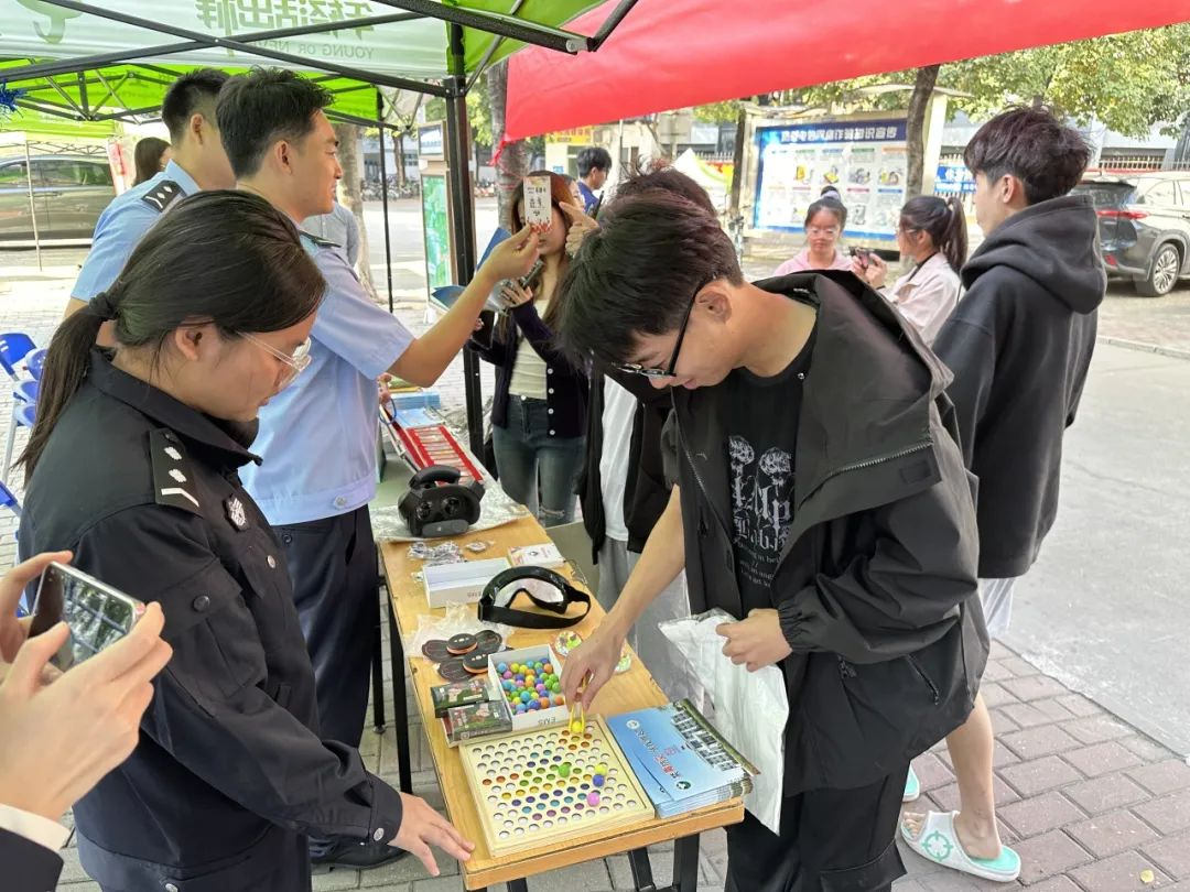 本次活动开设了禁毒防艾活动摊位,广东省第四强制隔离戒毒所的警官们设置了许多禁毒体验活动,例如禁毒视觉VR、毒瘾模拟手环、迷眼放弹珠和禁毒知识问答等,通过这些活动,让同学们身临其境地了解毒品的危害,从而远离毒品。