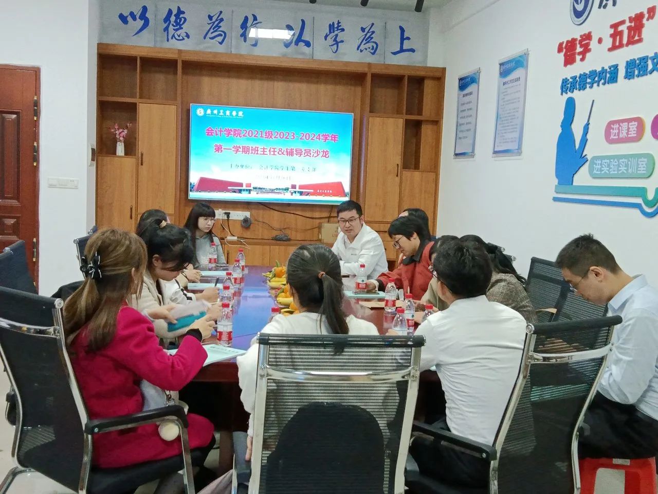 为加强班主任与辅导员之间的交流与合作,落实学期初会计学院班主任工作会议精神,11月16日下午,会计学院2021级在三水校区第一教学楼D203辅导员工作室举办了一场别开生面的班主任&辅导员沙龙活动。此次活动吸引了众多班主任老师参加,大家共同探讨教育教学的新理念、新方法,为更好的服务学生、管理班级而交流心得、贡献智慧。
