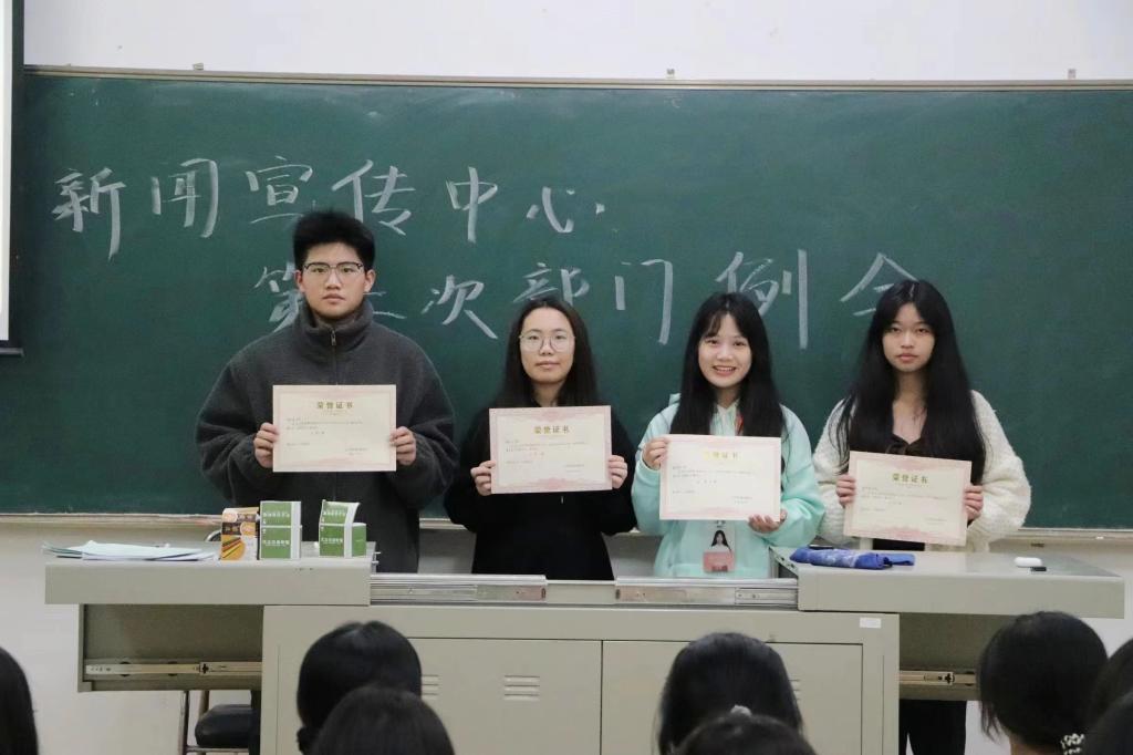 为表彰先进,树立榜样,激励干事们砥砺前行,部门对优秀干事进行了颁奖。副主任林舒婷同学对陈祉豪、黄悦心、蒋燕旋、廖伊晴四位优秀干事颁发了奖状和礼品。