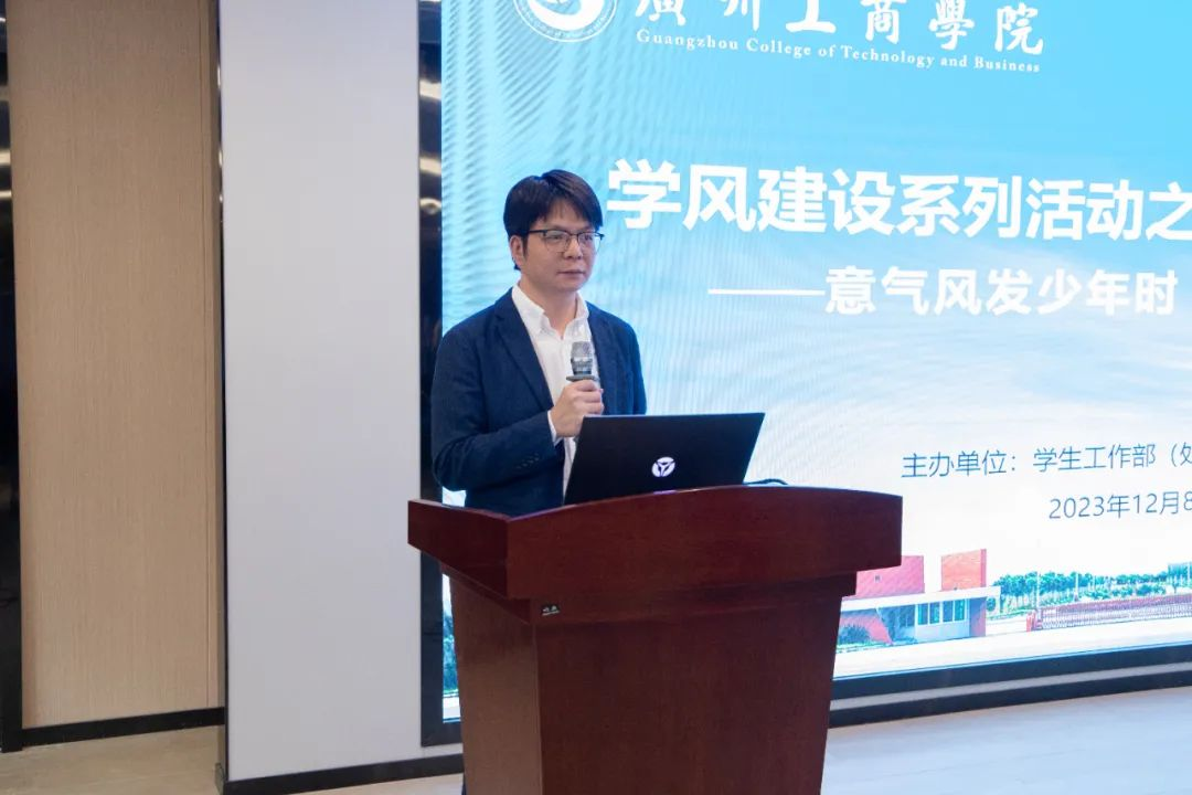 学校学生工作部(处)副部长苏建贤出席,学校校友会办公室王伟杰老师、学生工作部(处)成员、三水校区师生参加了本次分享会。本次分享会由学生工作部(处)思想政治教育中心主任罗文威主持。