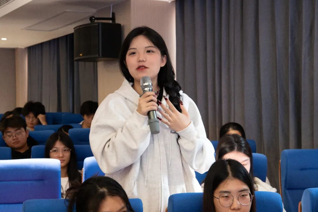 除了以上分享,沈林学长还热情地和同学们交流互动。大家围绕大学学习“舒适圈”、升学考研、求职等进行提问,学长结合自身经历为同学们答疑解惑。“种一棵树最好的时间是10年前,其次是现在”,他建议同学们要将想法化为实际行动,努力学习,不断突破。