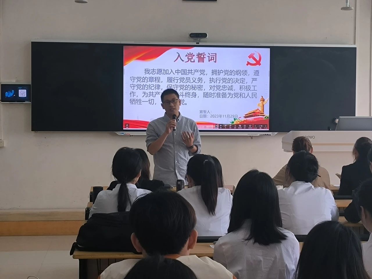 在个人汇报与介绍人评价的议程中,学生第二党支部18名中共预备党员分别从思想认识、学习工作以及生活情况等方面汇报了自己在预备考察期的情况,并表达了自己加入中国共产党的意愿和坚定决心。同时,他们也指出了自身存在的不足之处,并表示会在今后的学习生活中继续努力,不断完善自身。同志们发言完毕后,入党介绍人对预备党员的表现进行了客观评价,并对其是否同意转正发表了意见。