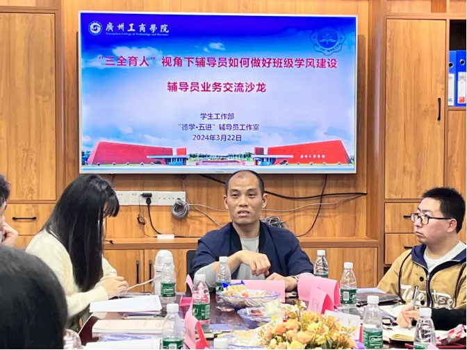 为了更好的提升辅导员素质能力,完善辅导员队伍建设,提高辅导员思想政治教育水平,全面服务学生的成长成才,3月22日上午,由ky开元学生工作部(处)主办、“德学·五进”辅导员工作室承办的“三全育人”视角下辅导员如何做好班级学风建设的辅导员业务沙龙在三水校区一教D203辅导员工作室召开。辅导员罗爽妍主持本次会议,工作室成员及各学院辅导员代表参与。