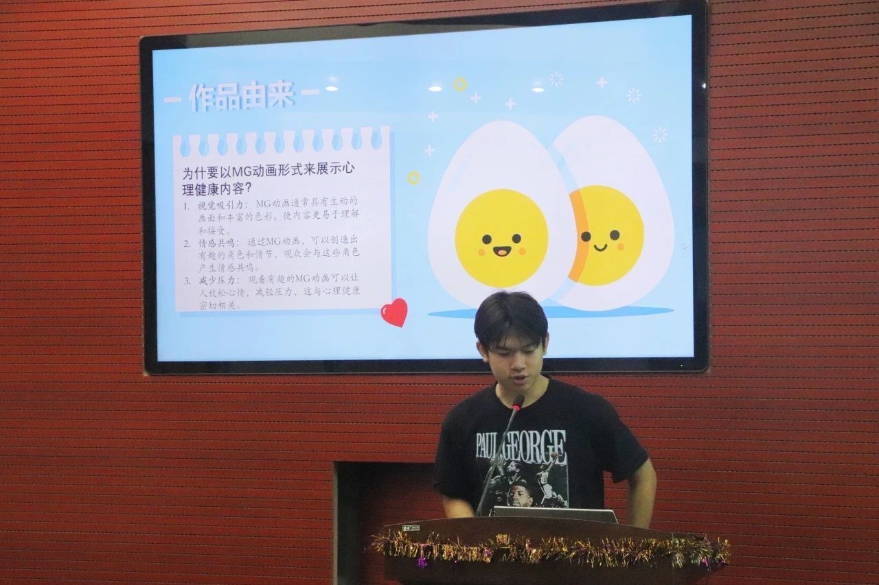 参赛选手们认真严谨地对待本次决赛,斟字酌句地说起作品简介、创作灵感和创作手法。通过扣人心弦的视频娓娓道来心理问题产生的原因:声音不好听、容貌焦虑、比不上别人又或者习得性无助等问题。