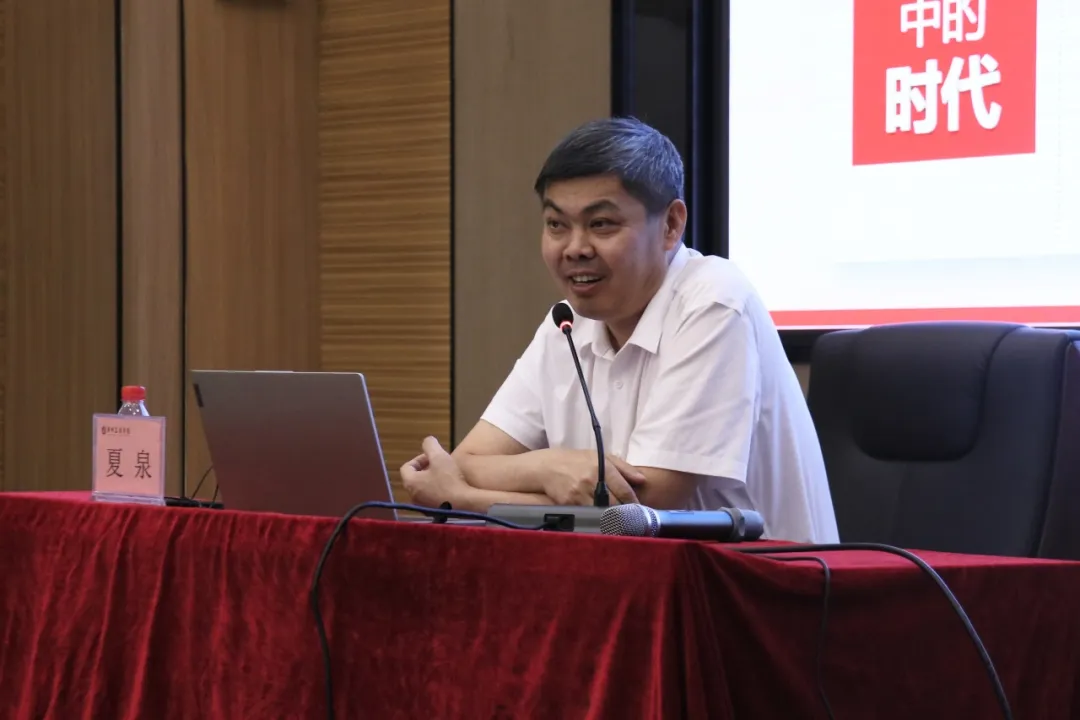 夏泉教授从认识时与势和因应变局两个部分内容进行讲授。他指出,要正确认识到所处的历史方位与发展大势,从长时段维度把握中国共产党历史脉络,贯通历史、现实与未来,从历史长河、时代大潮与全球风云变幻中分析演变机理、探究历史规律,聚焦中国共产党的诞生给中国和世界带来的“三个深刻改变”,以长时段、宽视野观察党史,用联系、发展、全面的观点分析历史事件,更加准确、深刻地认识中国共产党的成立在其百年历史中的重要地位和突出作用。