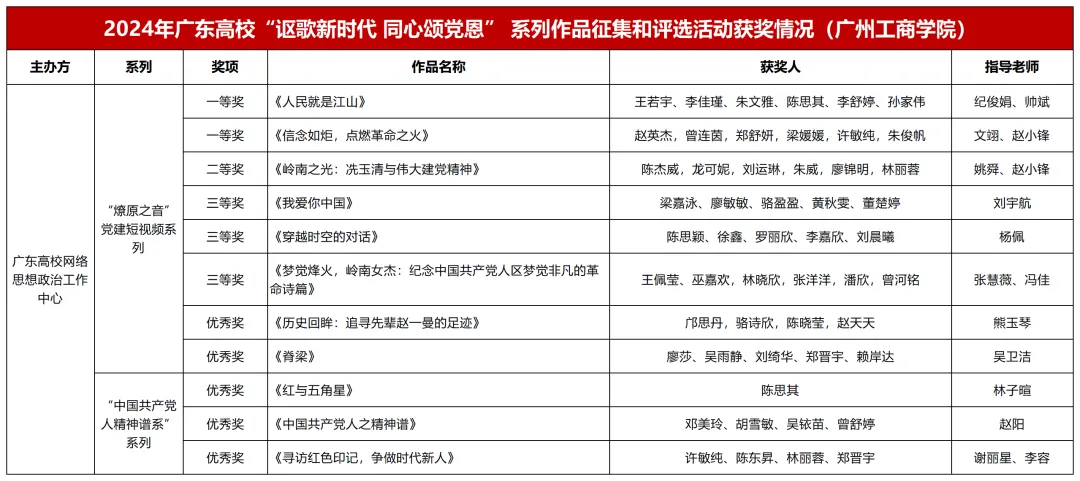 在2024年广东高校“讴歌新时代 同心颂党恩”系列作品征集和评选活动中,ky开元师生荣获一等奖2项,二等奖1项,三等奖3项,优秀奖5项。