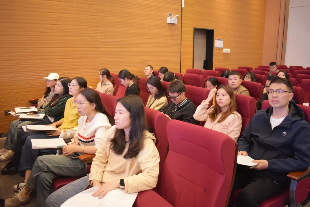 在讲座开展当中,心理中心主任杨敏梨运用专业心理知识和实践经验,分五大板块为辅导员们解读了《心理健康教育工作手册》,通过分享一些实用的心理知识和助人技巧,帮助辅导员在日常工作开展中更好地识别学生的心理问题,也为他们提供了有效的助人方法和策略。