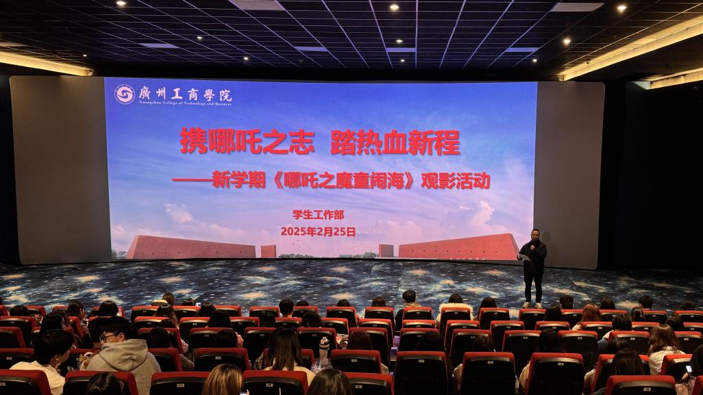 观影活动开始前,由学生工作部副部长苏建贤就本次活动开展发表讲话。他表示,《哪吒之魔童闹海》不仅是一部精彩的动画电影,更是中华文化魅力和新时代青年风貌的生动体现。希望同学们能以哪吒为榜样,在新学期中勇于探索、敢于创新,为实现中华民族伟大复兴的中国梦贡献力量。