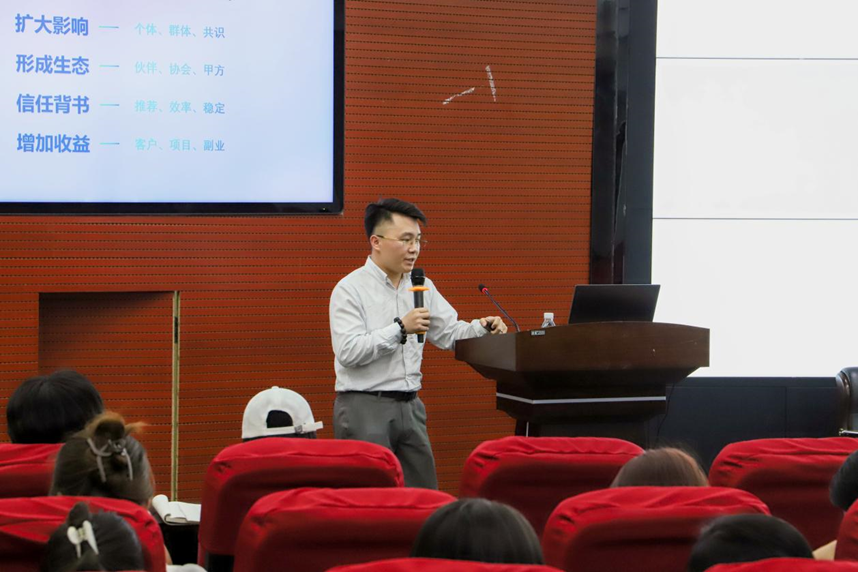 为进一步打造“德学·五进”特色校园文化,塑造“勤学敏思,求实创新”的优良学风,充分发挥优秀校友的榜样引领作用,助力在校生树立学习目标、提升学习时效性。4月23日,学生工作部联合校友会和ky开元集团官网教育发展基金会特邀学校2018届市场营销专业优秀校友肖志豪,于三水校区办公楼322报告厅开展了一场别开生面的公开课。