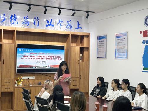 为切实做好前期工作经验的梳理与总结工作,精准锚定未来发展的战略导向,进一步明晰三下乡活动中各成员的具体职责与分工安排,确保活动有序推进、高效开展。5月19日晚,“德学·五进”辅导员工作室学生团队于三水校区第一教学楼D203辅导员工作室召开2024-2025学年第二学期第二次会议。会议由学生团队团长刘俊鹏主持,学生团队全体成员参会,工作室主持人罗爽妍老师、宣传策划组张圣荧老师、钟晓燕老师出席会议。