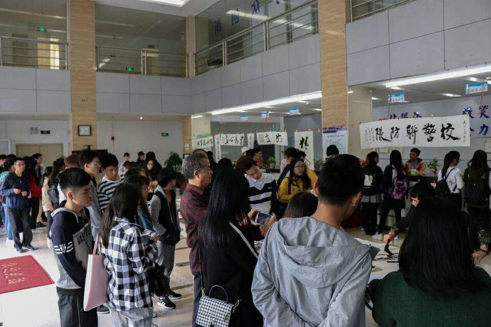 交流会后,各位专家前往早已备好了笔墨纸砚的一站式服务大厅。各位书画家泼墨挥毫,写下了一幅幅精美的书法作品。同时,面对本院书画协会的同学们的提问,专家们也都一一耐心解答。专家以及学生们的书画作品摆满了整个大厅,笔墨风韵也溢满了整个校园。