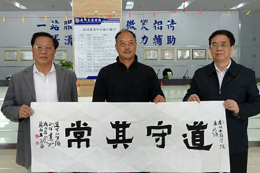 王宪荣书法家为我院题上一幅‘常其守道’,并表明这也是自己的人生信条。这幅作品笔力苍劲,其书法造诣也可见一斑。随后邝邦洪院长写下一幅字,对各位专家莅临本院交流表示欢迎,并持写下的作品一起合影留念。