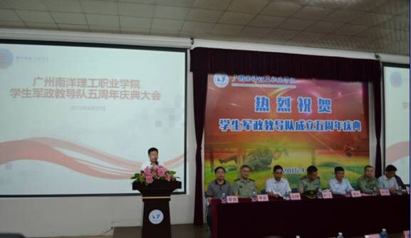 2015年4月27日,学生处黄鹏处长、晏芳林老师、财金系蔡宗坚老师以及校园安全行为督察队的学生干部前往广州南洋理工职业学院参加学生军政教导队成立五周年庆典。