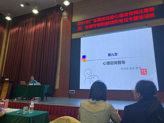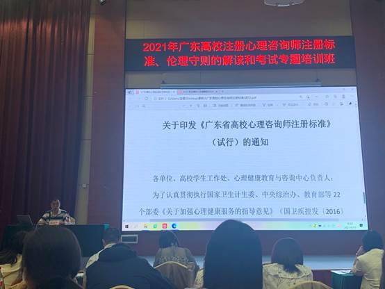 2021年4月15至4月16日,ky开元学生处心理健康教育与咨询中心李婷婷老师、李淑怡老师赴江门鹤山参加由广东省高校心理健康教育与咨询专业委员会主办的广东高校注册心理咨询师注册标准、伦理守则的解读和考试专题培训班。参加本次培训班的人员包括广东省各高校心理健康教育与咨询中心专兼职老师、学生工作队伍老师与辅导员,共计200余人。