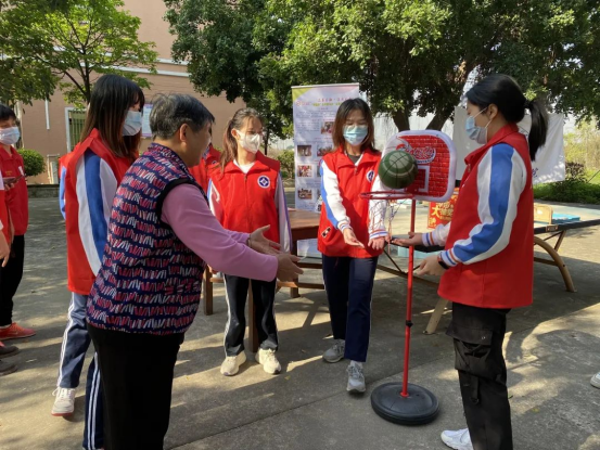 会计学院学生与长者进行游戏互动、抽取免费礼品,现场气氛其乐融融
