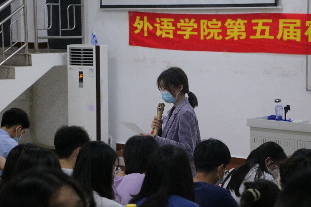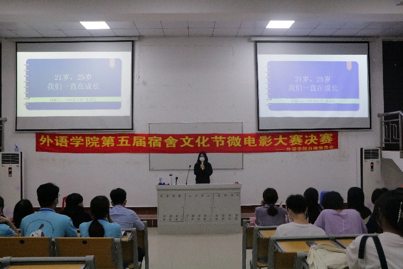 所有参赛选手演讲完后,由外语学院团总支书记傅瑾老师、外语学院学工办副主任董理政老师、已经外语学院自律委员会指导老师孔方园老师老师担任评委并对作品一一进行细心点评,高度的赞扬了本次比赛的部分作品和宿舍精神,同学们也以热烈的掌声表示认可。