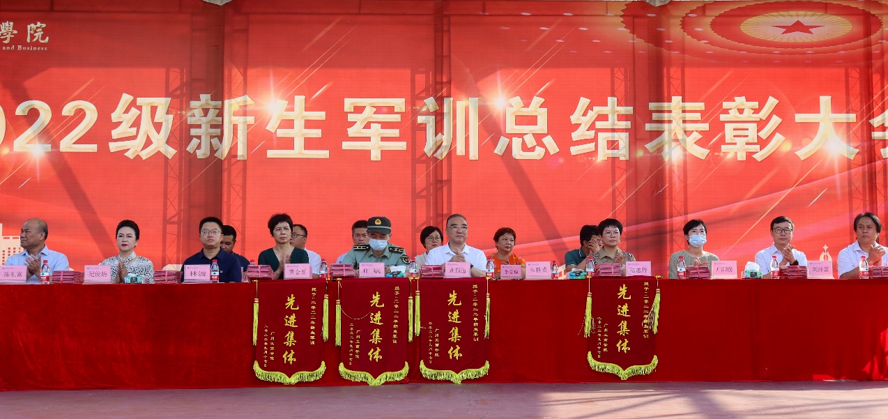 董事办主任陆志丹女士表示,在新生军训中,同学们克服困难,挑战自我,磨练了意志,也培养了严明的组织纪律性,为表彰先进,树立榜样,授予了一营商学院及其他三个集体为军训先进集体,希望同学们将军训中的优良作风带到大学生活中。
