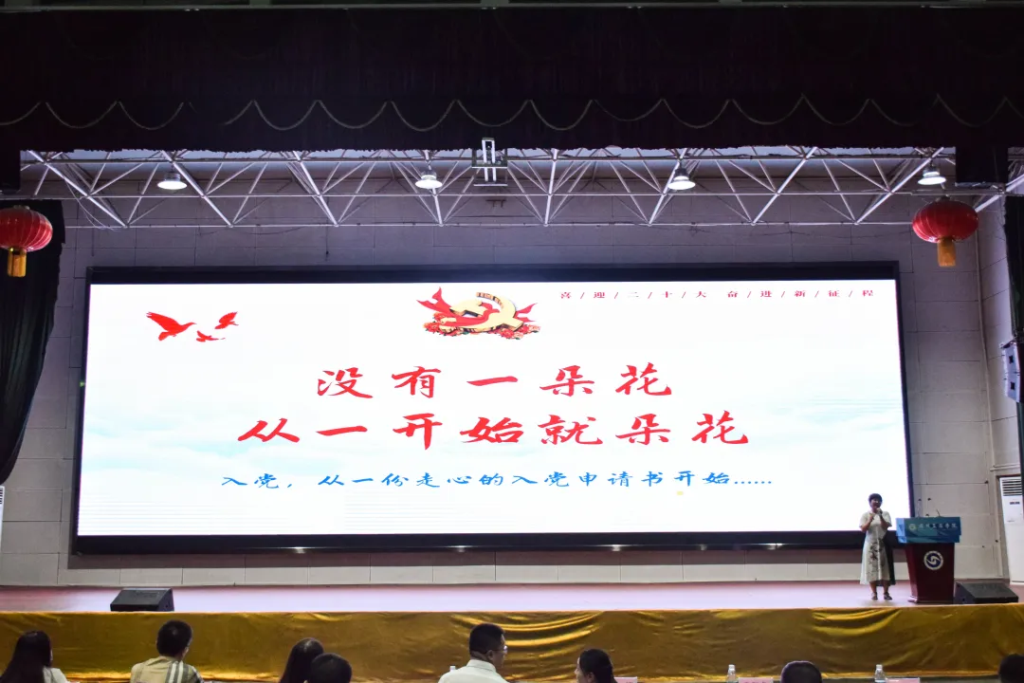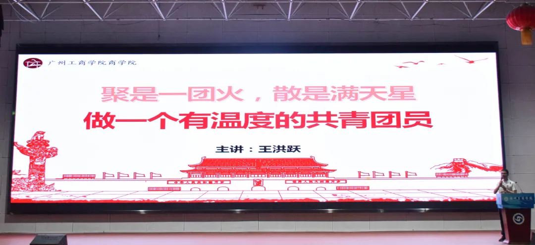 在于佩鑫老师发表完入党演讲后,接下来的新生团员教育环节则由王洪跃老师主持,他向新生们介绍了商学院团委学生会,鼓舞新生以昂扬的姿态面对崭新的大学生活。