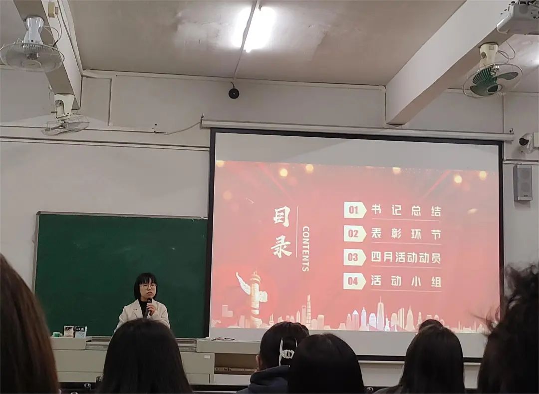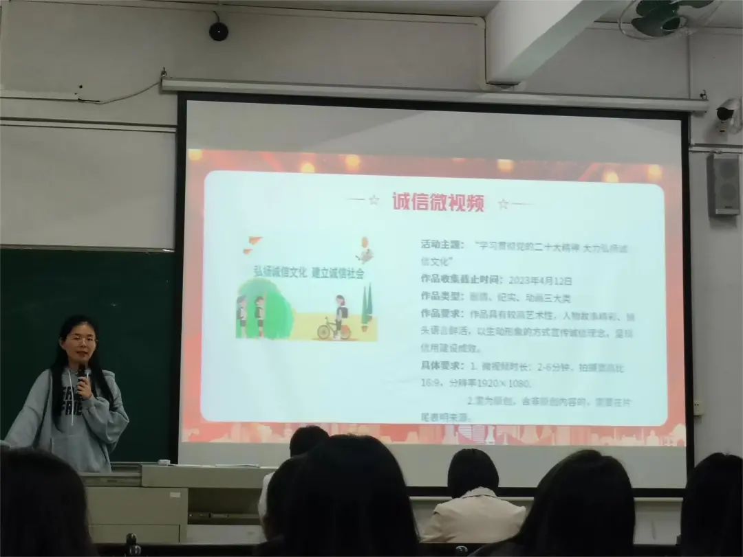 赵文莉同志进行四月份活动动员,分别对四月将要举办的两个活动进行介绍,一是反诈骗宣传微视频比赛,二是诚信微视频比赛,并对活动作品收集类型以及具体要求作了阐述,号召同学们踊跃参与。